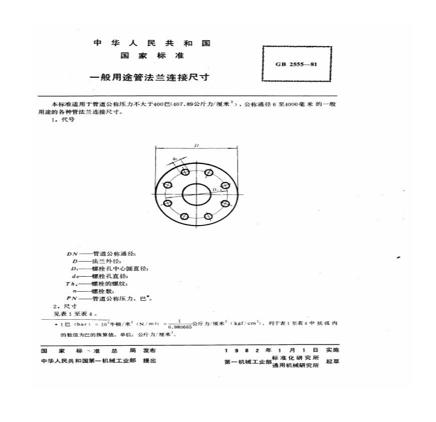 GB2555-1981一般用途管法兰连接尺寸.pdf 免费下载