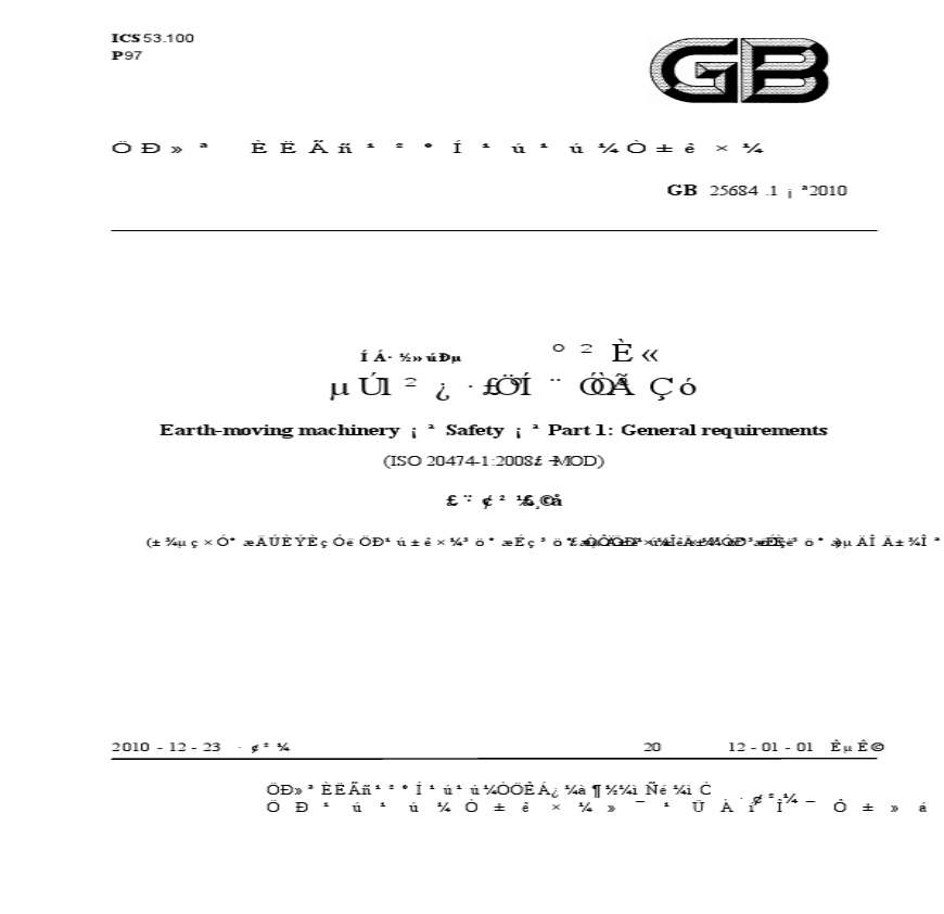 > GB25684.1-2010 土方机械 安全 第1部分:通用要求