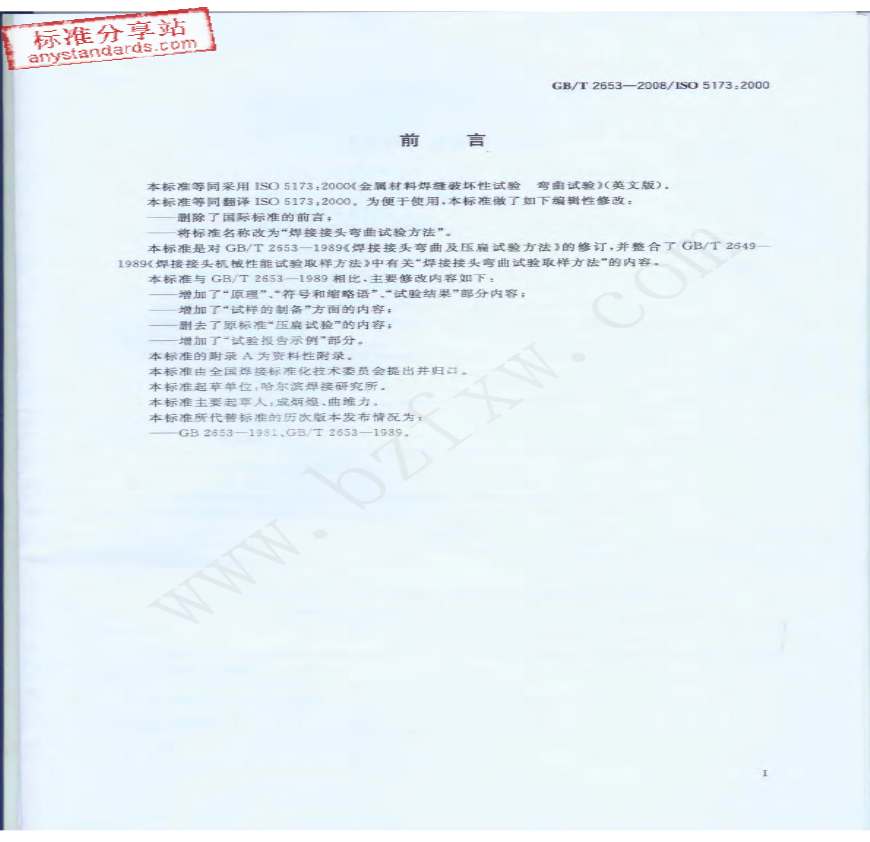 GB2653-2008 焊接接头弯曲试验方法资料下载,喜欢的朋友可以下载收藏!