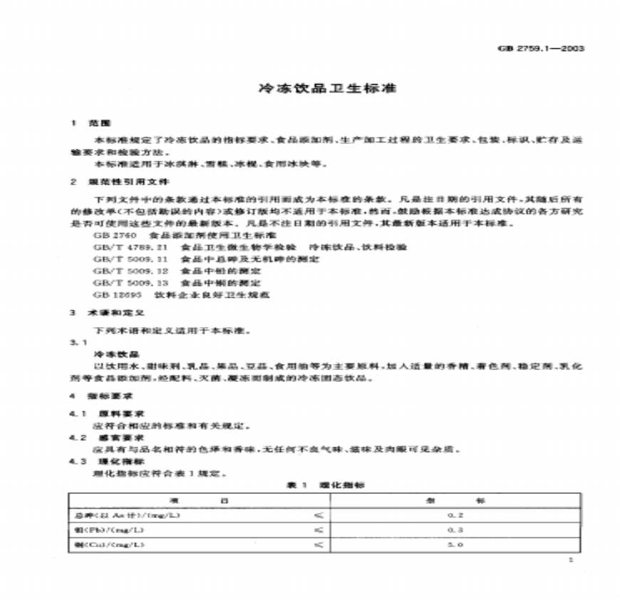 冷冻饮品卫生标准_国家标准_国内标准_食品标准_