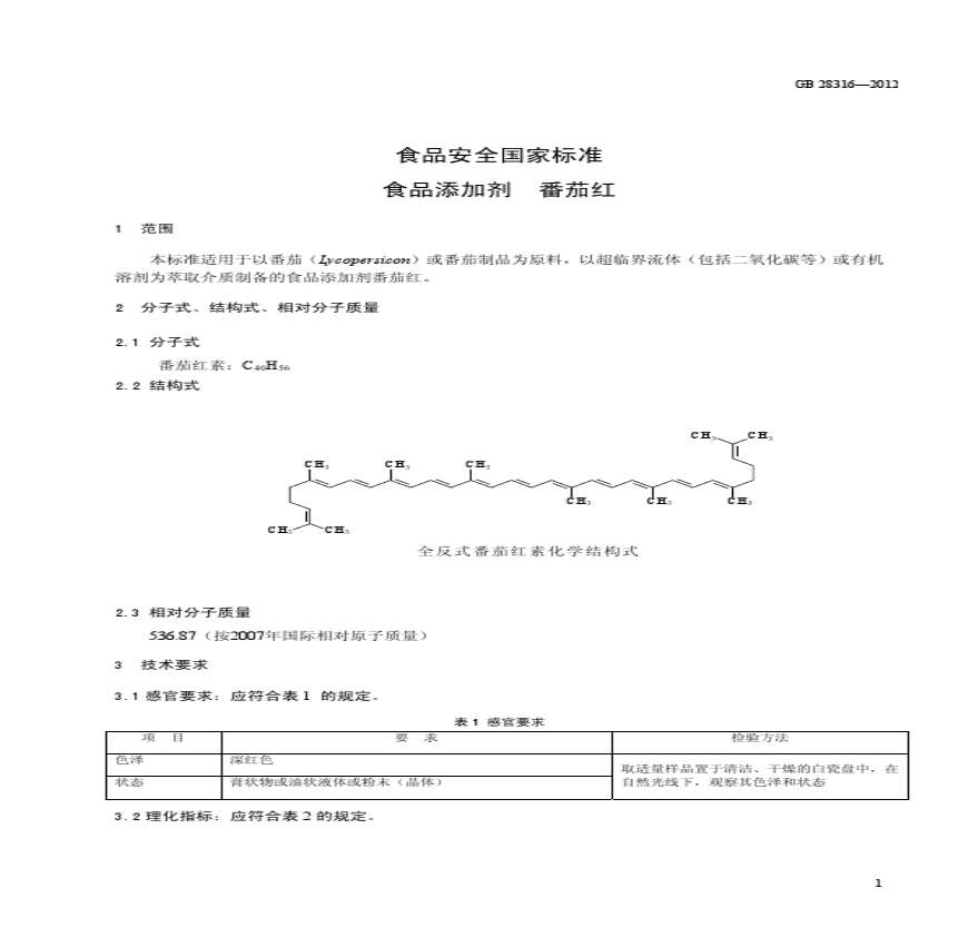 GB 28316-2012 食品添加剂 番茄红.pdf 免费下载