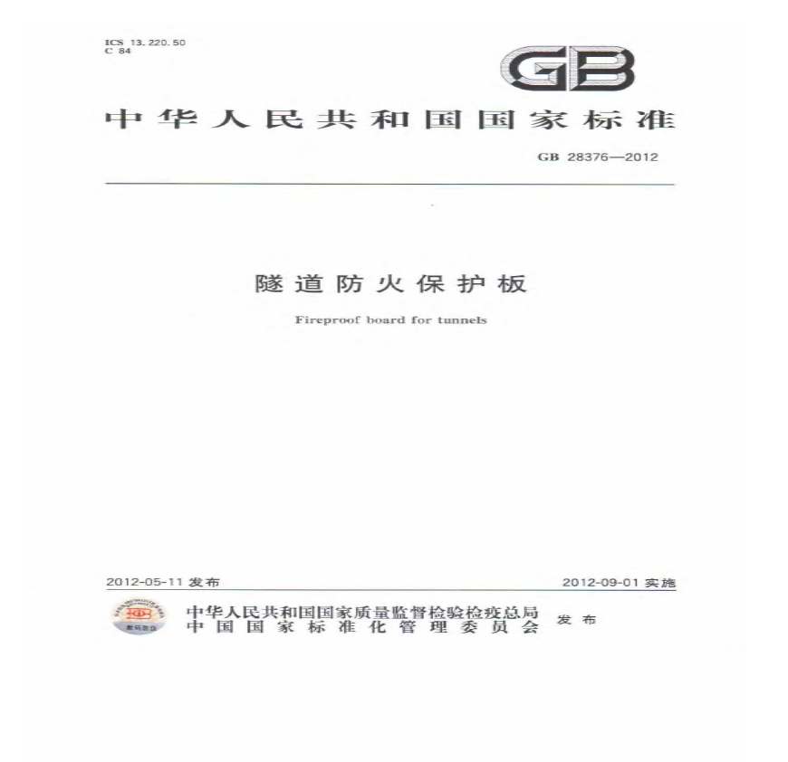 GB 28376-2012 隧道防火保护板资料下载,喜欢的朋友可以下载收藏!