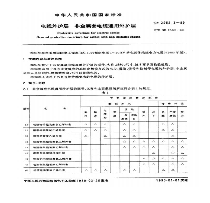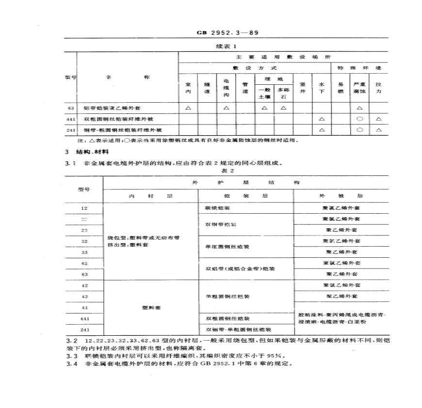 > GB 2952.3-1989 电缆外护层 第3部分:非金属套电缆通用外护层