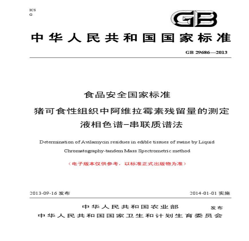 食品安全国家标准猪可食性组织中阿维拉霉素残留量
