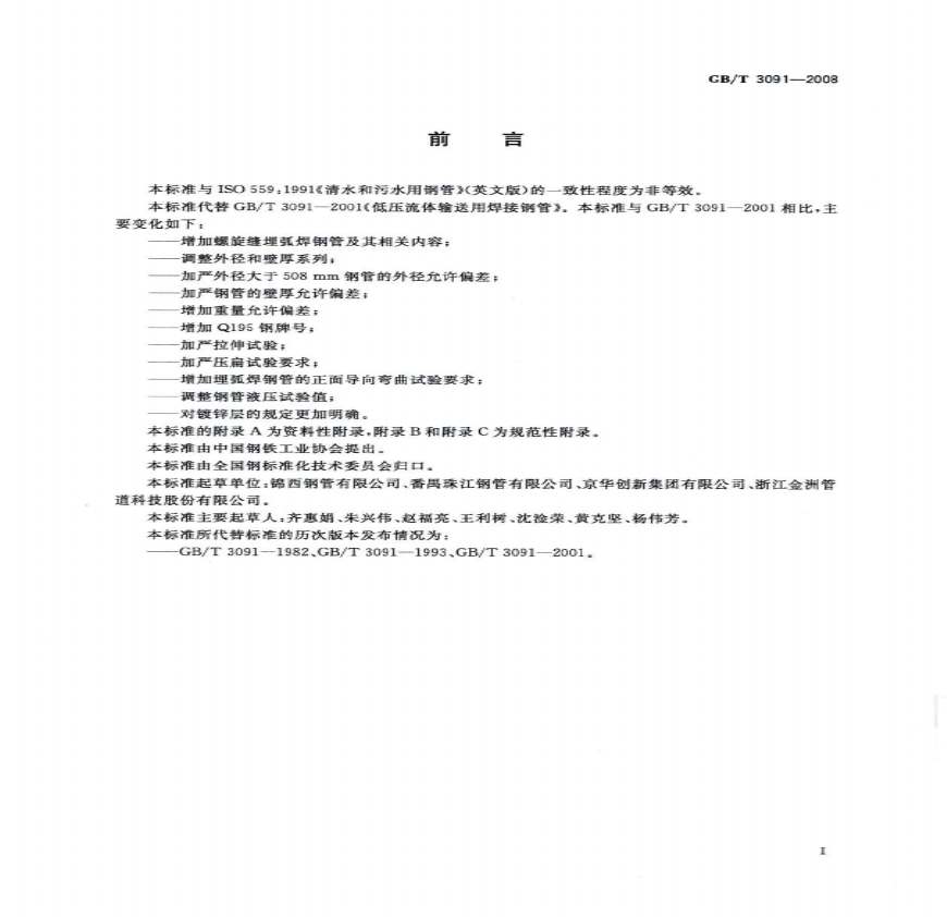 GB 3091-2008 低压流体输送用焊接钢管.pdf 免费下载