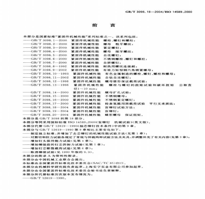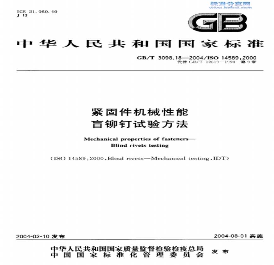 GB 3098.18-2004 紧固件机械性能盲铆钉试验方法资料下载,喜欢的朋友可以下载收藏!