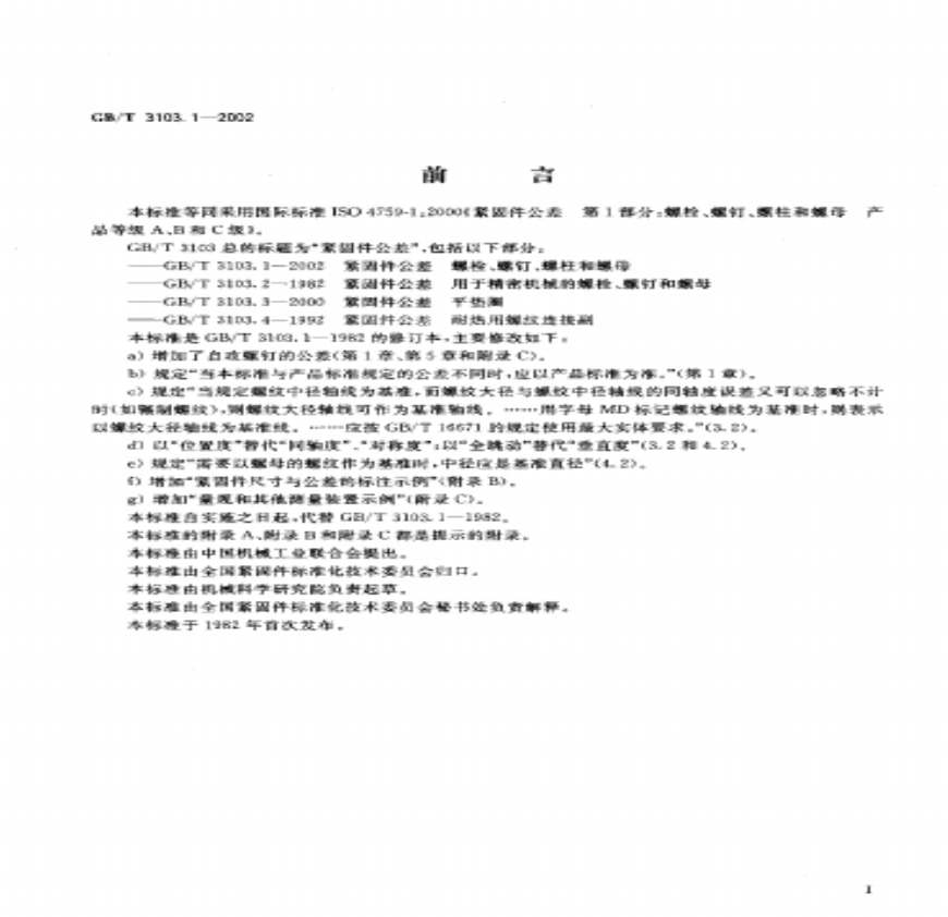 > GB 3103.1-2002-T 紧固件公差 螺栓、螺钉、螺柱和螺母