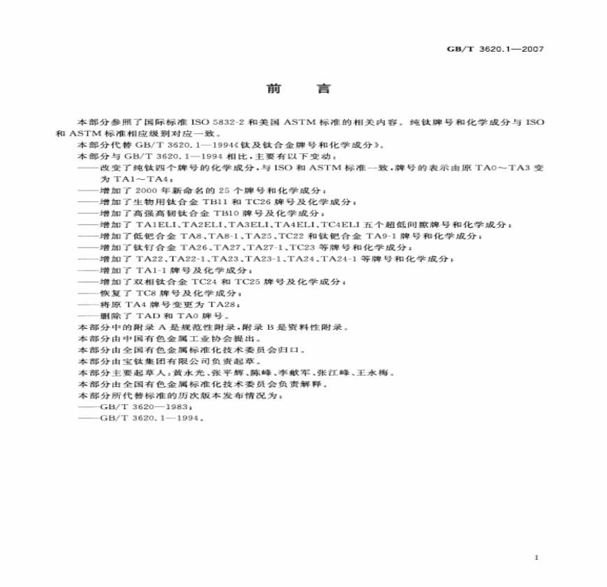 GB 3620.1-2007 钛及钛合金牌号和化学成分资料下载,喜欢的朋友可以下载收藏!