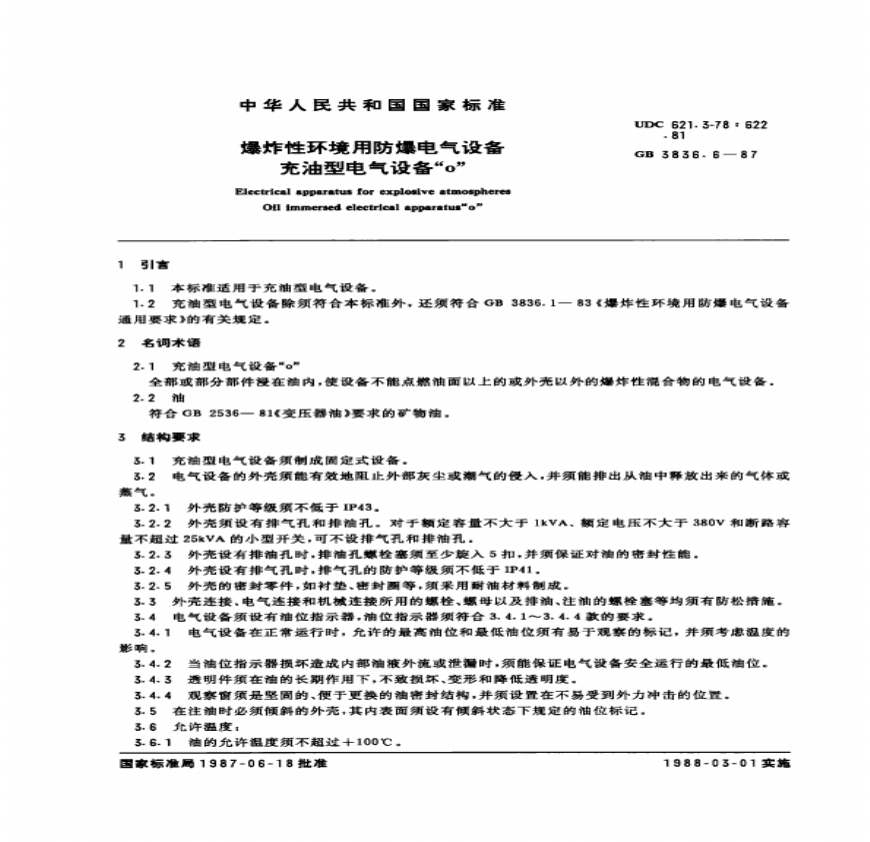 GB3836.6-87爆炸性环境用防爆电气设备 充油型电气设备“o”.pdf 免费下载