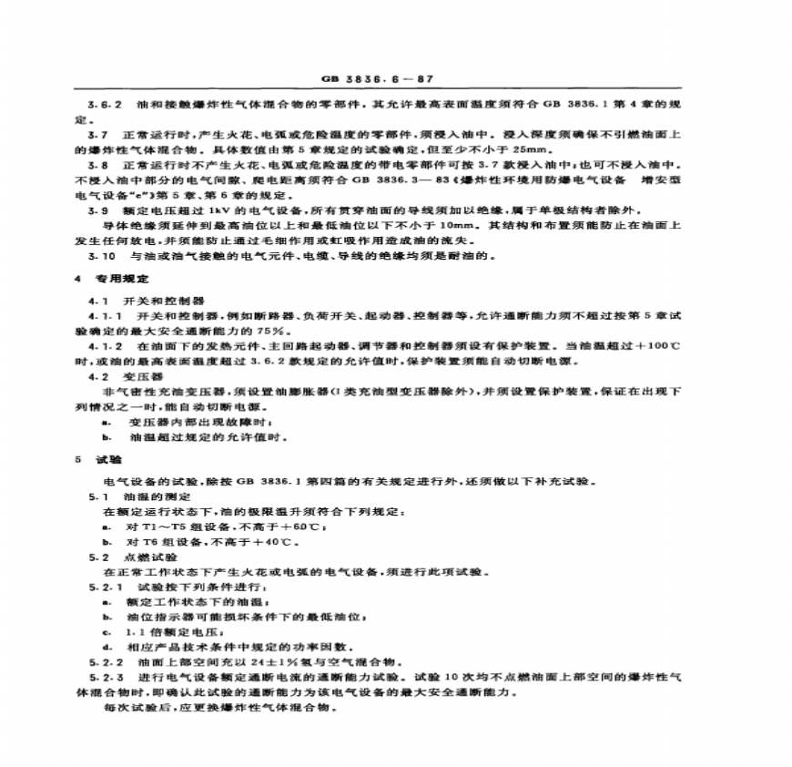 > GB3836.6-87爆炸性环境用防爆电气设备 充油型电气设备“o”