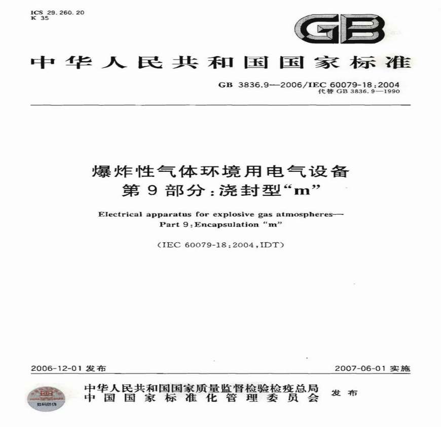 > GB3836.9-2006 浇封型电气设备“m”