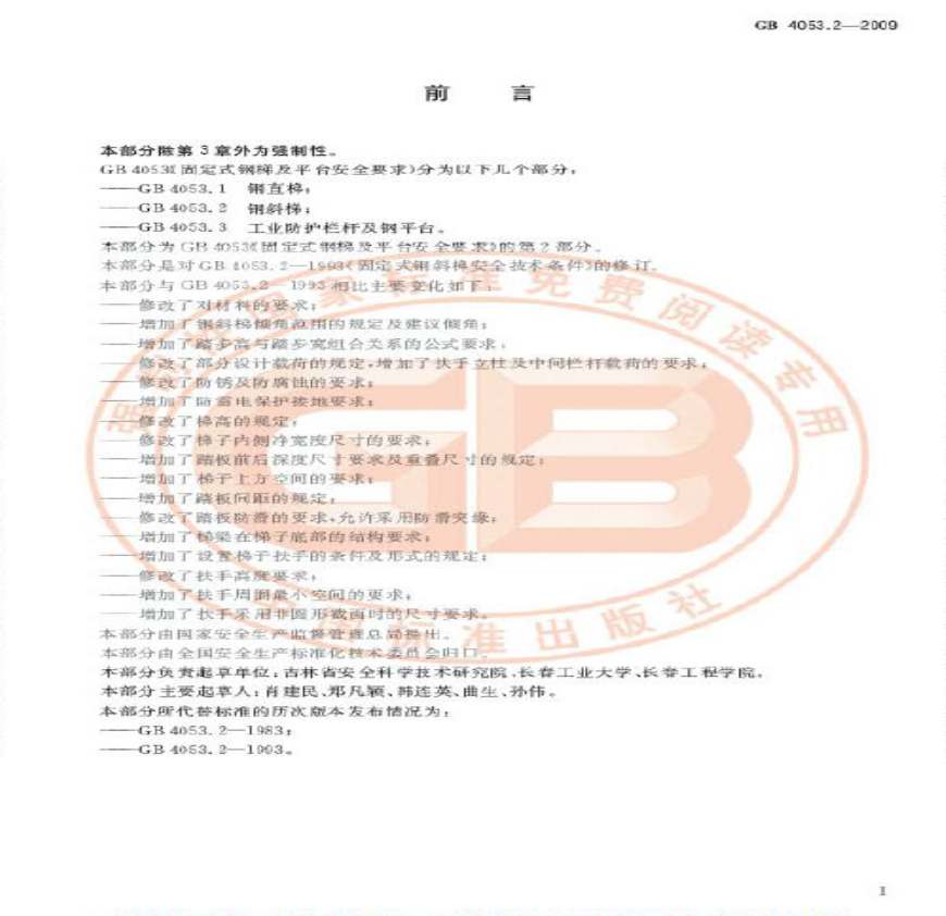 其他人还搜了登高车移动平台梯 b钢直梯 护笼爬梯标准b 固定式钢斜梯国家标准 卸料平台验收规范及标准图集 电厂烟囱的室外爬梯一般在多高处设置 废弃检测平台扶梯护栏高度国家标准 钢直梯和钢斜梯的区别 钢斜梯国家标准b 组合式不锈钢水箱国家标准选型表 钢梯及钢平台通用图集 钢直梯护笼国家标准b 钢质防盗门国家标准及代号 钢斜梯标准 钢斜梯和栏杆标准图 钢斜梯图集 钢斜梯 斜爬梯国家标准 钢斜梯角度国家标准 固定式钢斜梯图集 钢斜梯扶手国家标准 固定式钢斜梯技术标准 钢斜梯图片 组合式不锈钢板给水箱国家标准 固定式钢斜梯标准 《固定式钢梯及平台安全要求(第部分:)》 学习资料页 固定式钢梯及平台安全要求第部分:,犐犆犛犆中华人民共和国国家标准 —犌犅代替 — 固定式钢梯及平台 ——固定式钢梯及平台安全要求第部分: 第部分:范围本部分规定了固定式 固定式钢梯及平台安全要求 第 部分: 范围本 学习资料页 固定式钢梯及平台安全要求第部分: PDF 文件使用 Fr Pr 试用版本创建 固定式钢梯及平台安全要求 阅读可 学习资料页 GB-