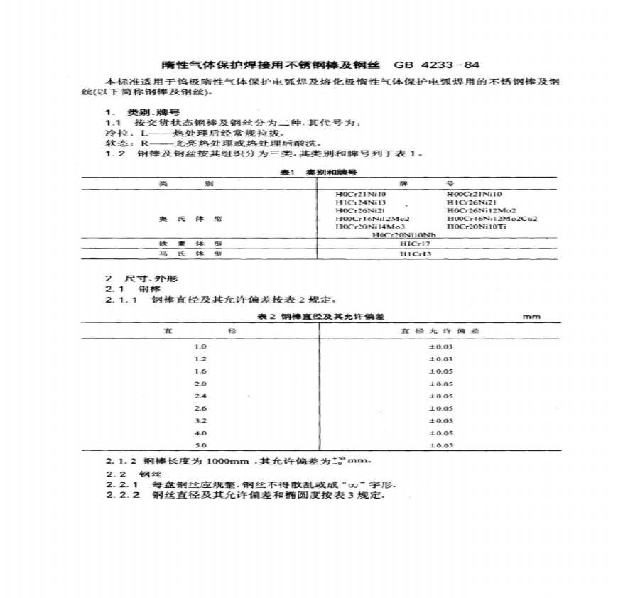 > GB4233-84 隋性气体保护焊接用不锈钢棒及钢丝