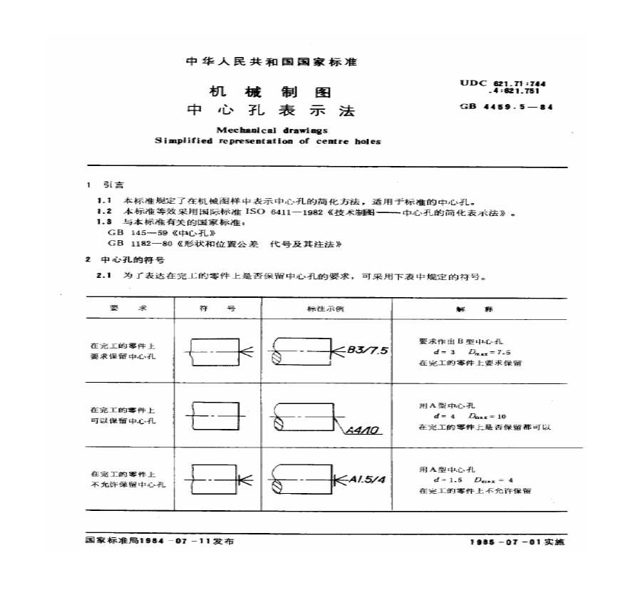 GB4459.5-84 机械制图 中心孔表示法.pdf 免费下载