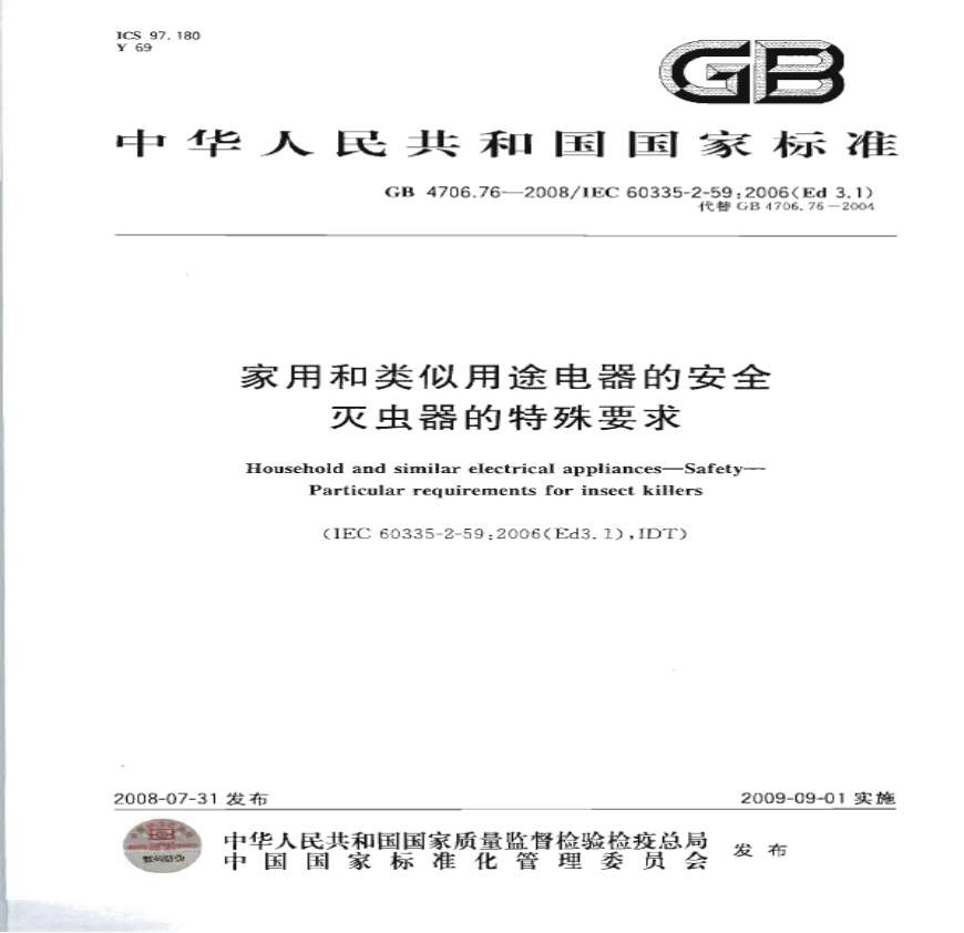 GB 4706.76-2008 家用和类似用途电器的安全 灭虫器的特殊要求资料下载,喜欢的朋友可以下载收藏!