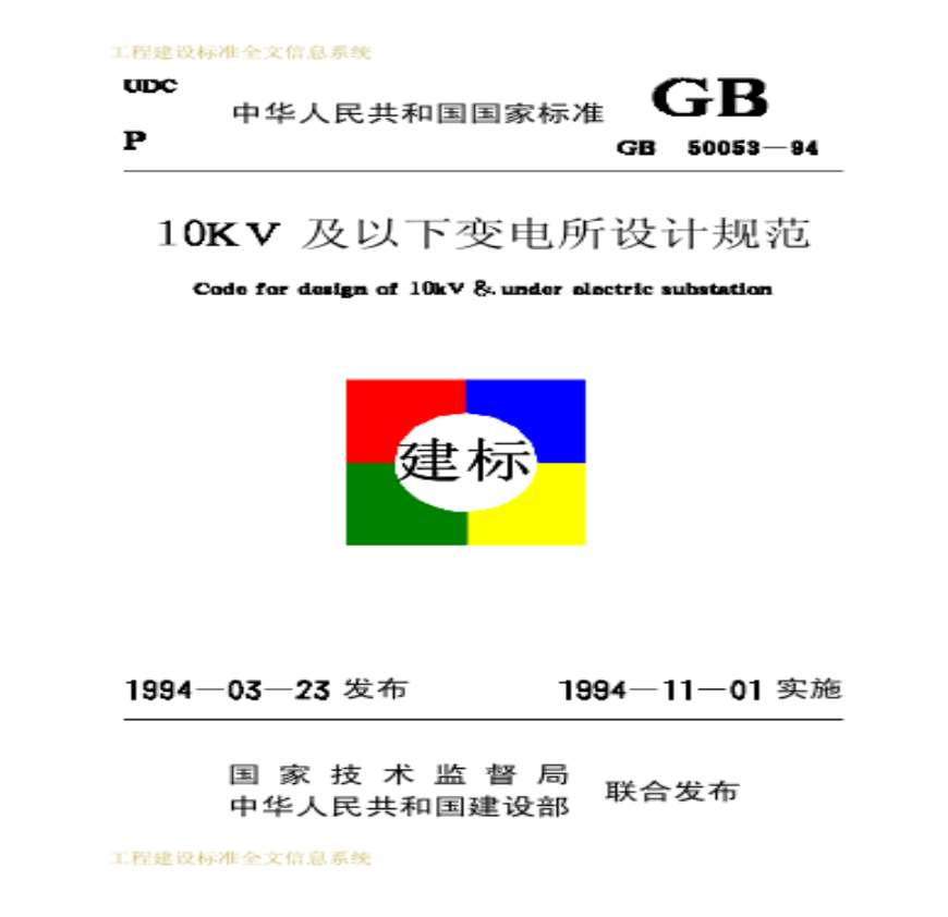 GB 50053-94《10KV及以下变电所设计规范》资料下载,喜欢的朋友可以下载收藏!