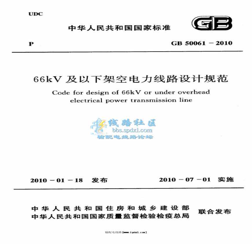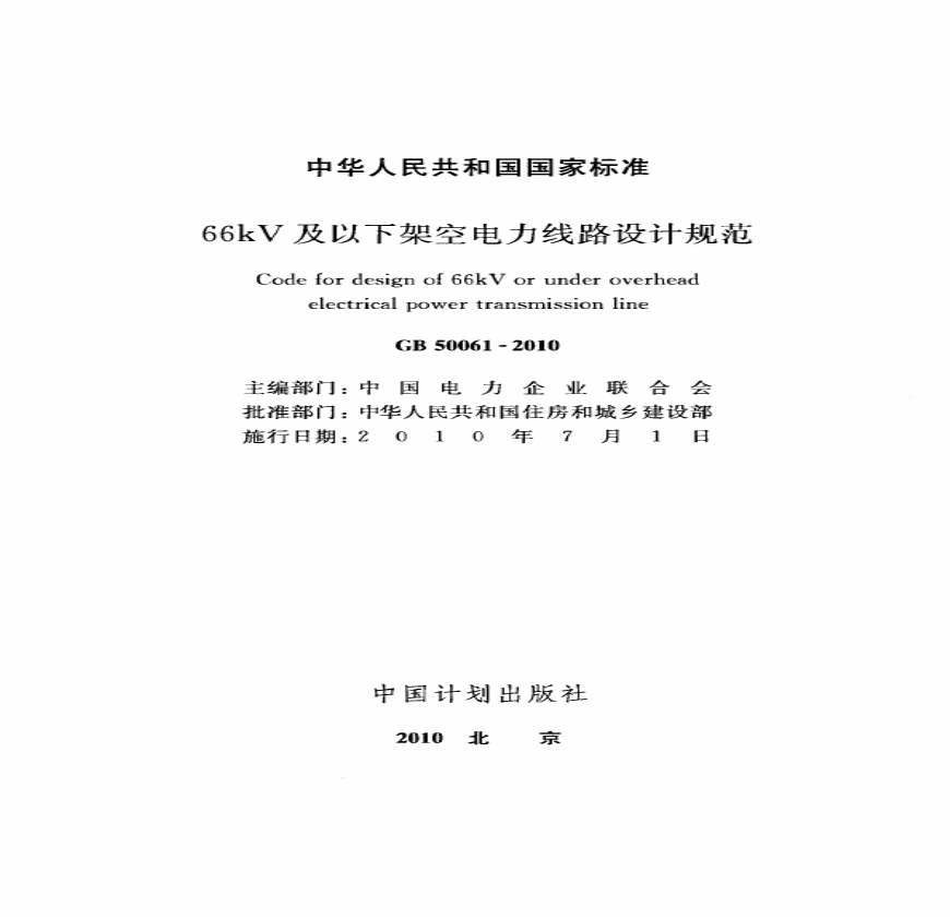 > GB50061-2010 66KV及以下架空电力线路设计规范
