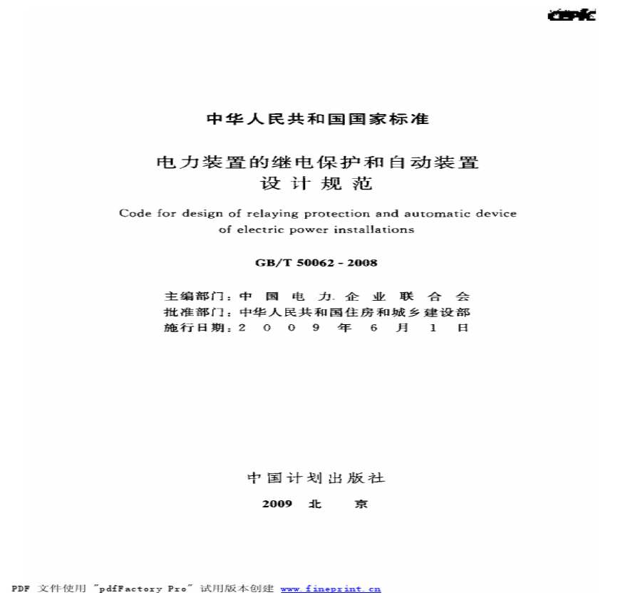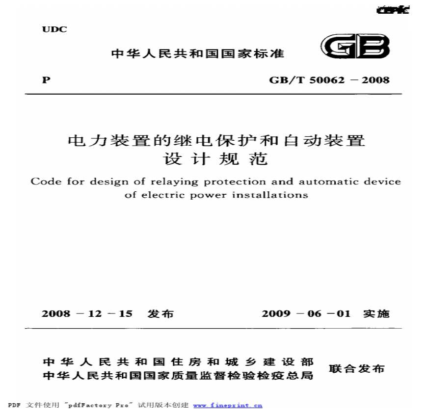 GB50062-2008T 继电保护和自动装置设计规范.pdf 免费下载