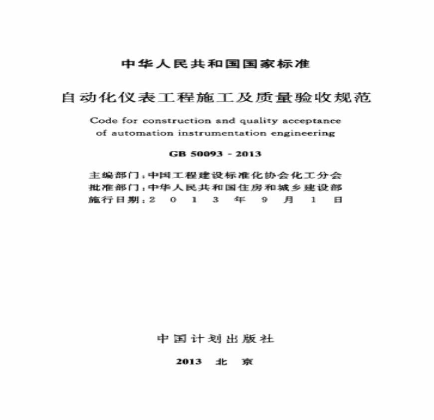 GB50093-2013 自动化仪表工程施工及质量验收规范(目录)资料下载,喜欢的朋友可以下载收藏!