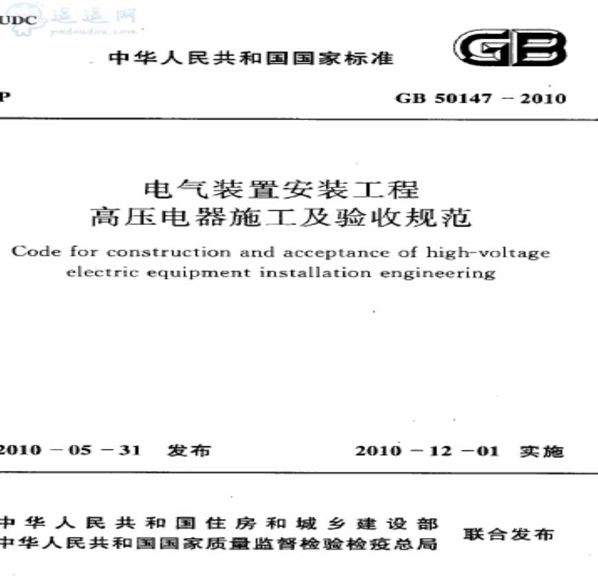 GB50147-2010《电气装置安装工程高压电器施工及验收规范》GB50147-2010资料下载,喜欢的朋友可以下载收藏!