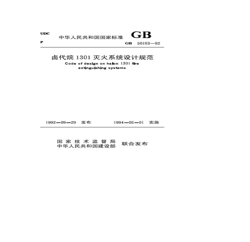 GB 50163-92 卤代烷1301灭火系统设计规范资料下载,喜欢的朋友可以下载收藏!