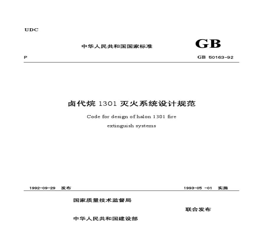 GB 50163-92卤代烷1301灭火系统设计规范资料下载,喜欢的朋友可以下载收藏!