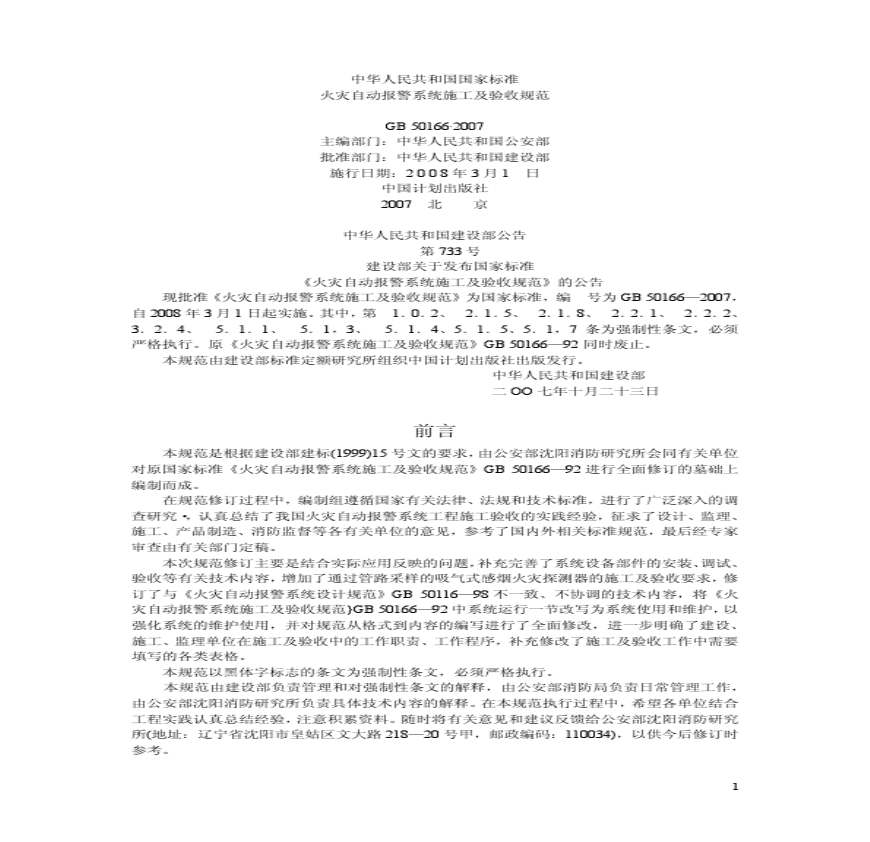 GB50166-2007火灾自动报警施工与验收规范.pdf 免费下载