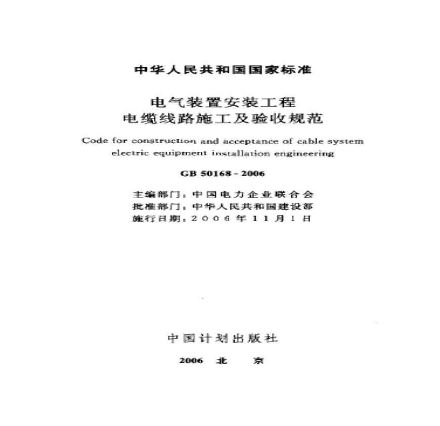 GB50168-2006《电气装置安装工程电缆线路施工及验收规范》.pdf 免费下载