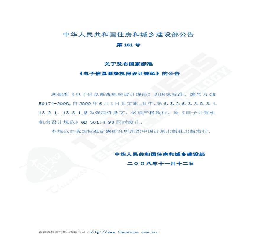 GB 50174-2008电子信息系统机房设计规范.pdf 免费下载