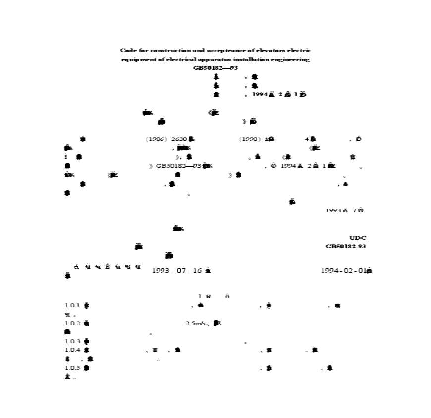 GB 50182-1993 电梯电气装置施工及验收规范资料下载,喜欢的朋友可以下载收藏!