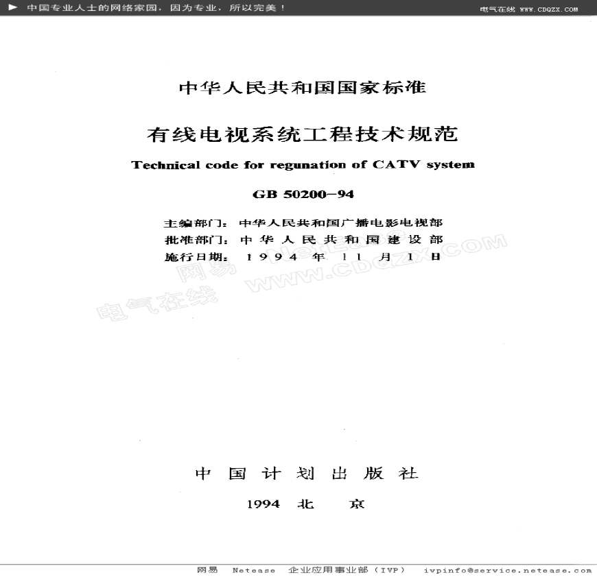 GB50200-94 有线电视系统工程技术规范.pdf 免费下载