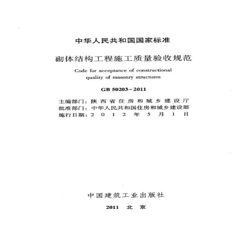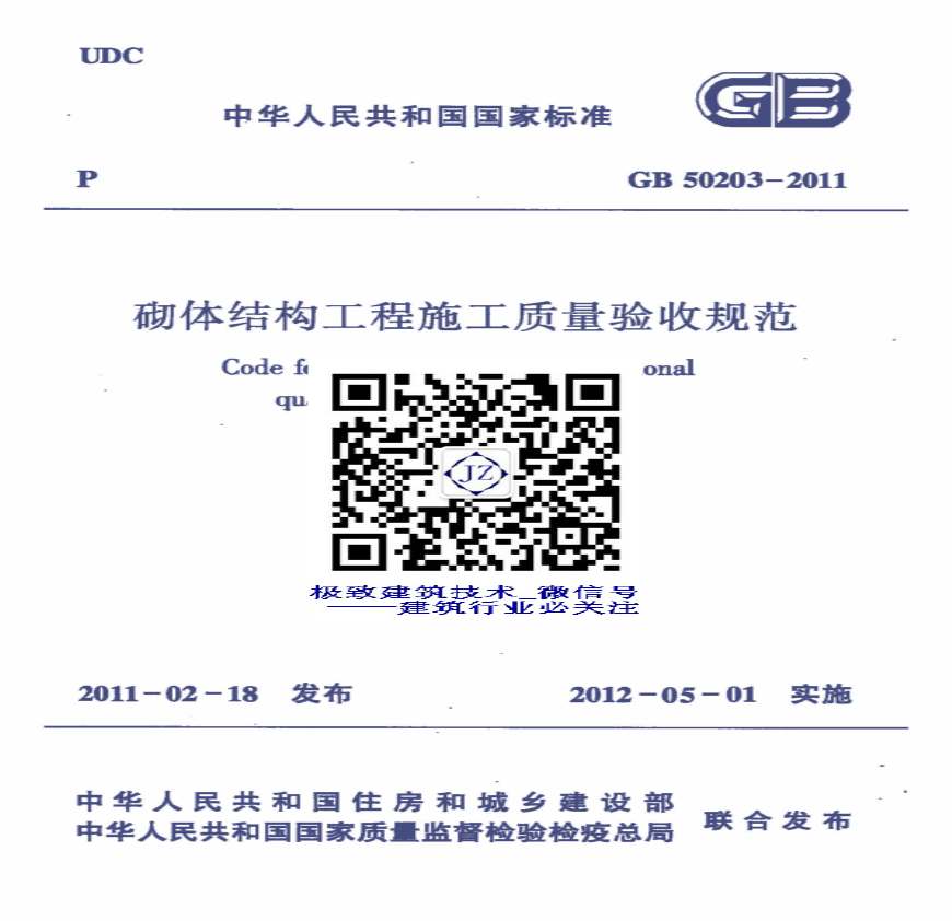 GB50203-2011《砌体工程施工质量验收规范》.pdf 免费下载