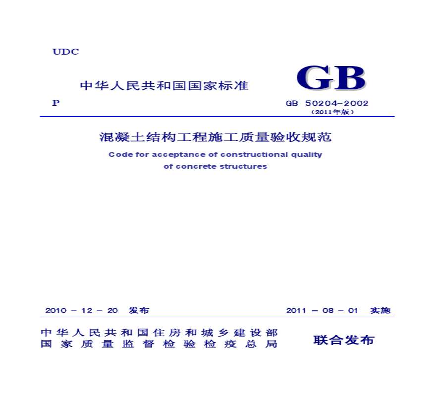GB50204-2002(2011年版)混凝土结构工程施工质量验收规范资料下载,喜欢的朋友可以下载收藏!