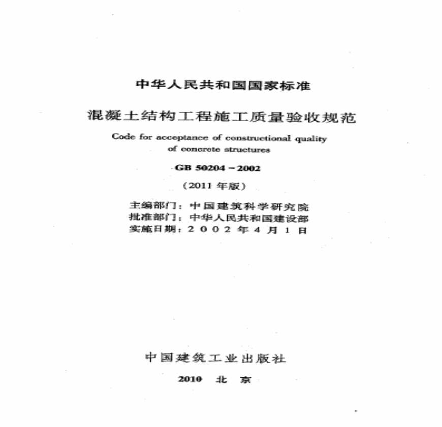 GB50204-2002混凝土结构工程施工质量验收规范(2011版)资料下载,喜欢的朋友可以下载收藏!