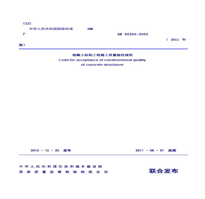 > GB50204-2011《溷凝土结构工程施工质量验收规范》