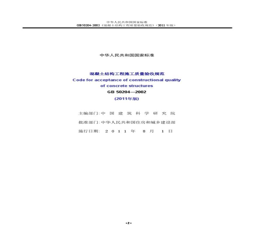 GB50204-2011《溷凝土结构工程施工质量验收规范》.pdf 免费下载