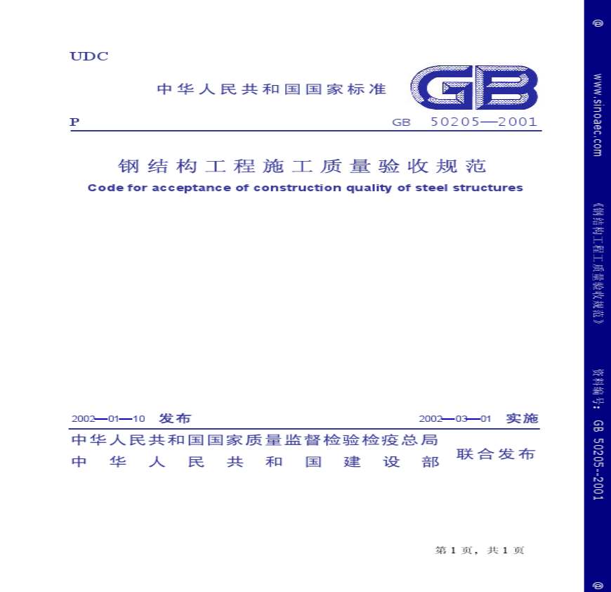 GB50205_2001 钢结构工程施工质量验收规范资料下载,喜欢的朋友可以下载收藏!