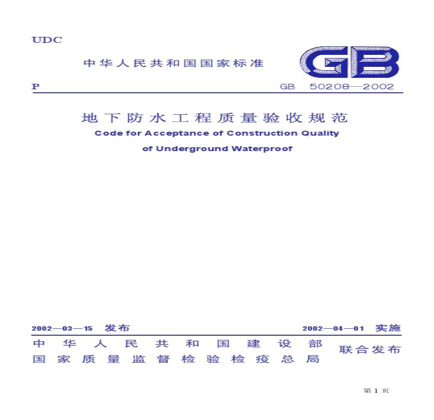 GB 50208-2002地下防水工程施工质量验收规范资料下载,喜欢的朋友可以下载收藏!