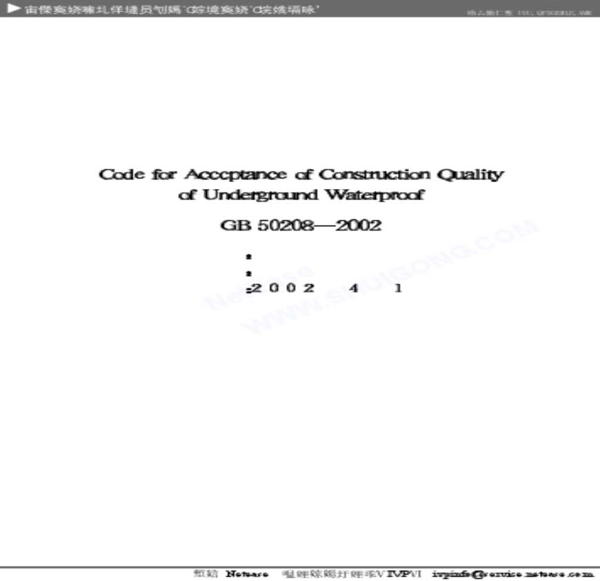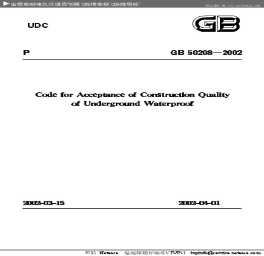 GB 50208-2002地下防水工程质量验收规范资料下载,喜欢的朋友可以下载收藏!