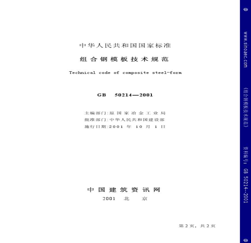GB50214-2001 组合钢模板技术规范