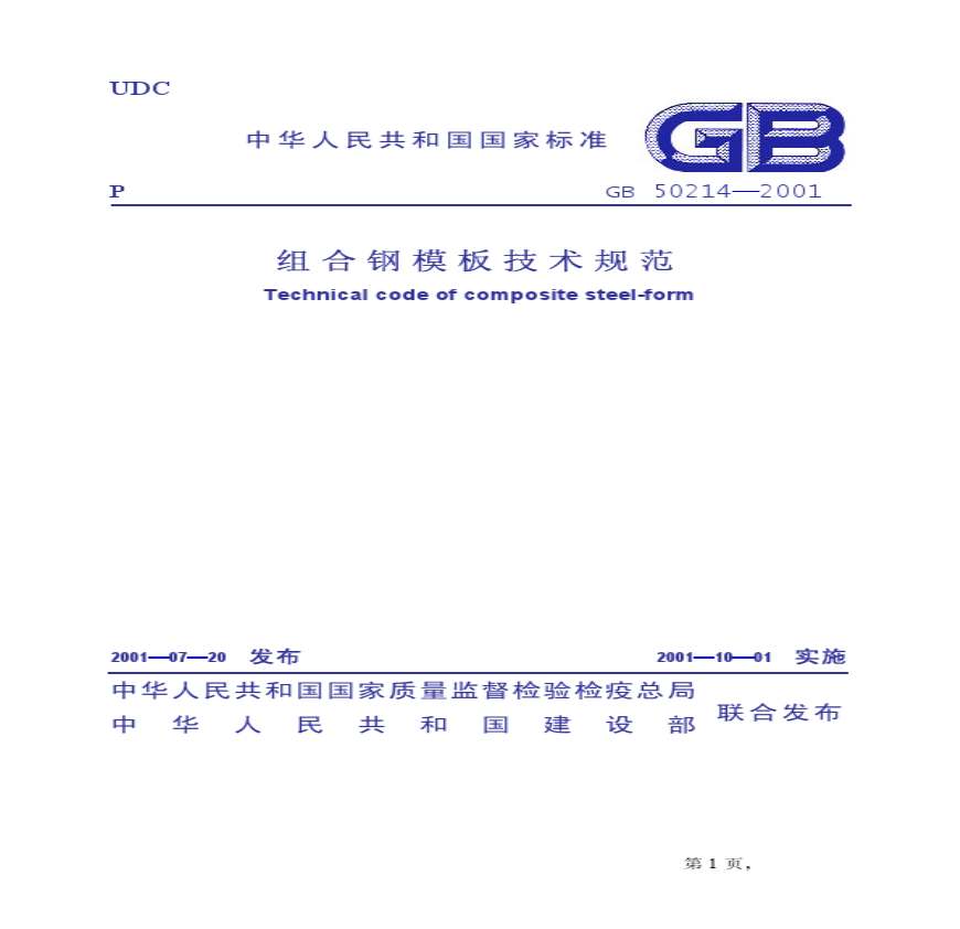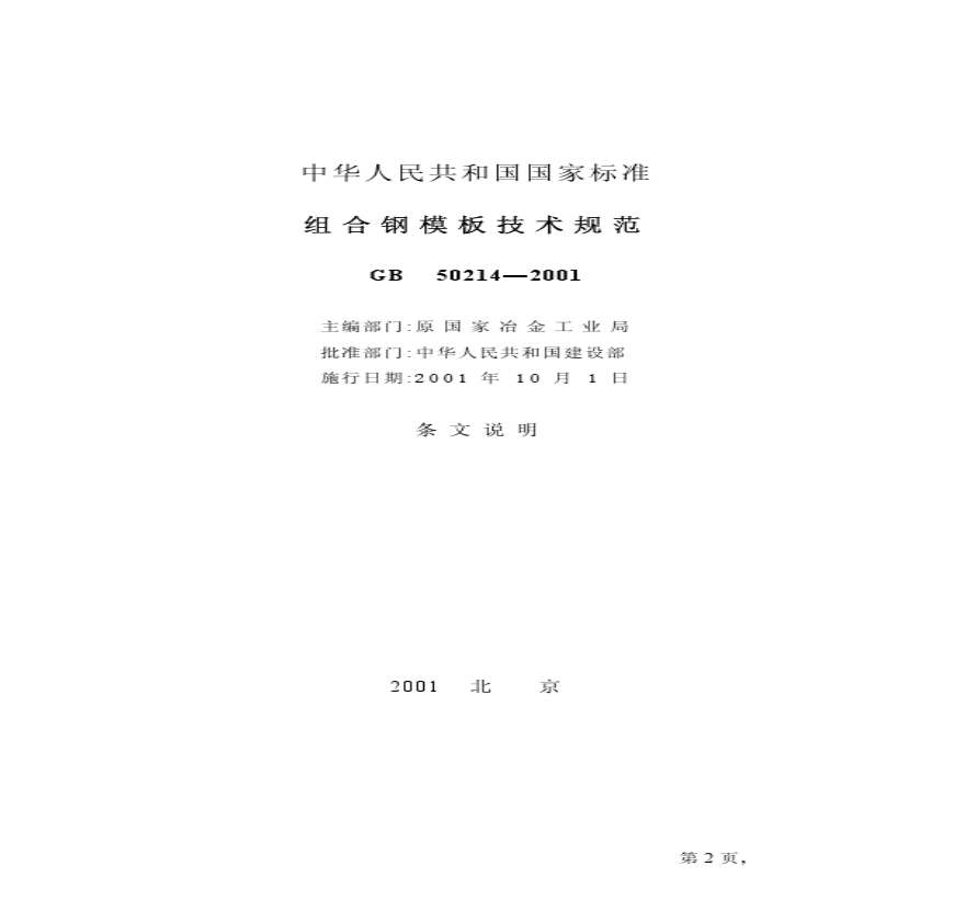 GB50214-2001 组合钢模板技术规范 条文说明.pdf 免费下载