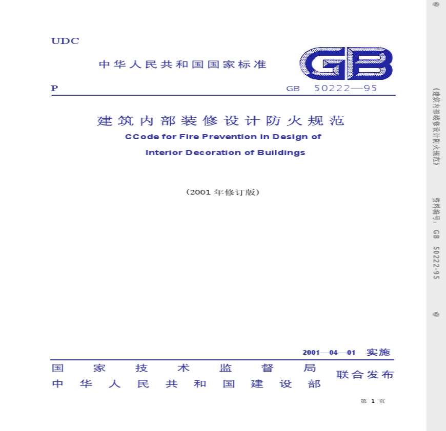 GB 50222-2001 建筑内部装修设计防火规范资料下载,喜欢的朋友可以下载收藏!