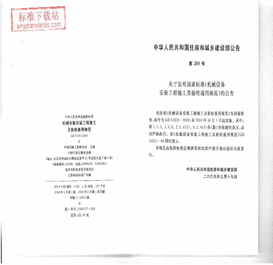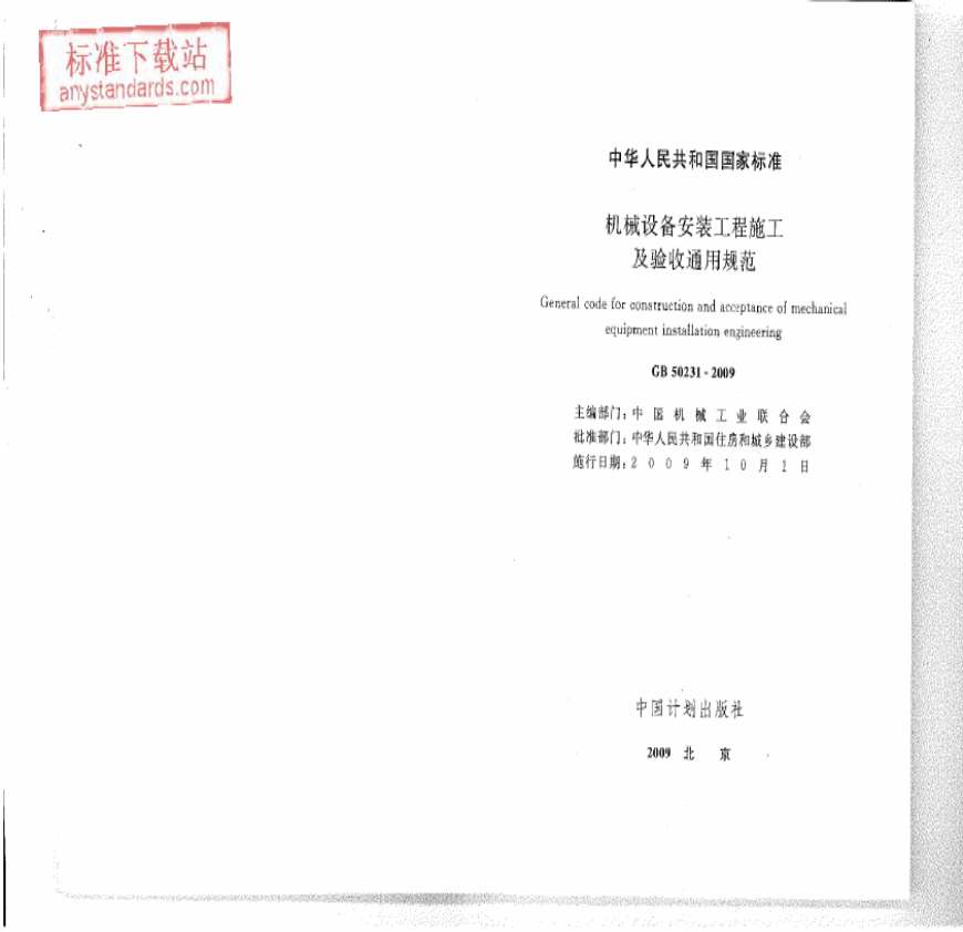 GB_50231-2009_机械设备安装工程施工及验收通用规范资料下载,喜欢的朋友可以下载收藏!