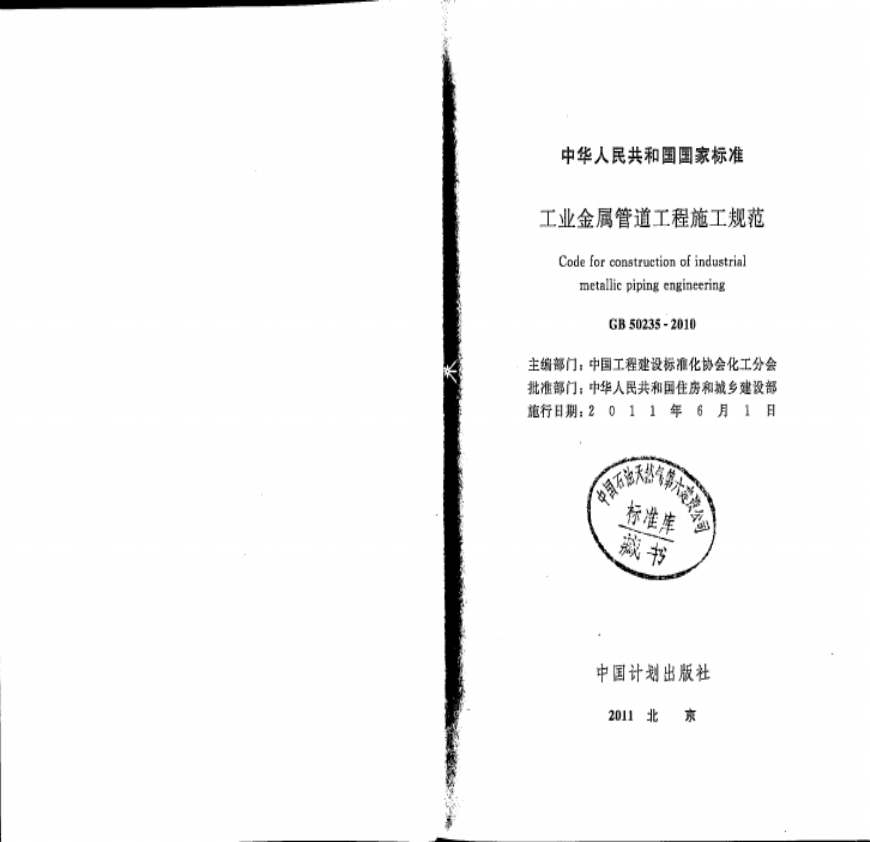 GB 50235-2010 照相版工业金属管道工程施工规范资料下载,喜欢的朋友可以下载收藏!
