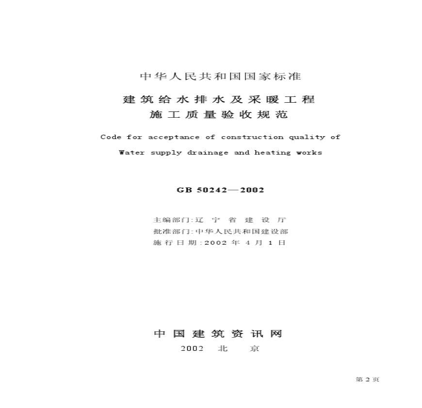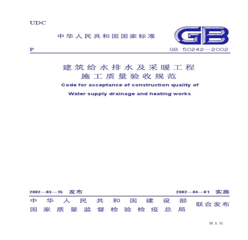 GB 50242-2002 建筑给水排水及采暖工程施工质量验收规范资料下载,喜欢的朋友可以下载收藏!