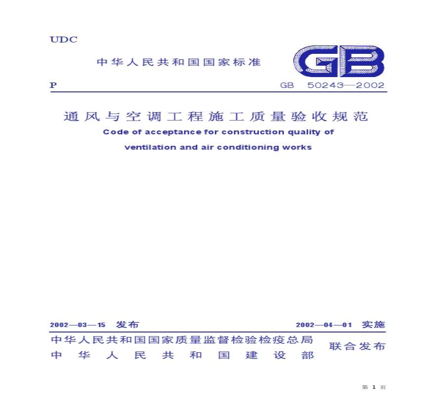 GB50243 2002 通风与空调工程施工质量验收规范资料下载,喜欢的朋友可以下载收藏!