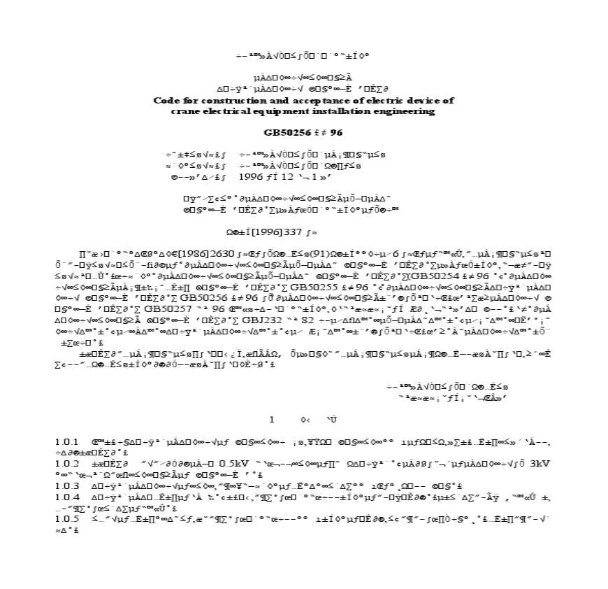 > GB50256-96 电气装置安装工程起重机电气装置施工及验收规范