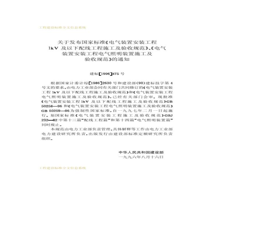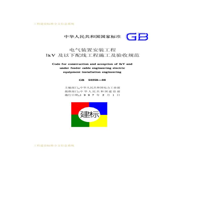 GB50258-1996_电气装置安装工程(GB50303取代)_1KV及以下配线工程施工及验收规范资料下载,喜欢的朋友可以下载收藏!