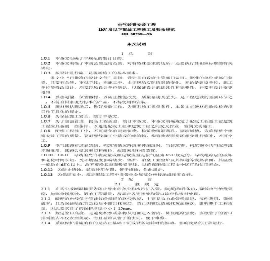 > GB50258-96《电气装置安装工程1kV及以下配线工程施工及验收规范