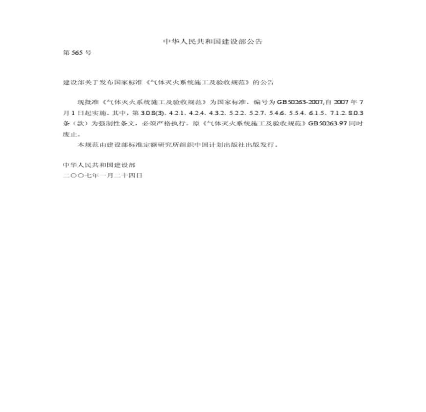 > GB 50263-2007 气体灭火系统施工及验收规范(含条文说明)